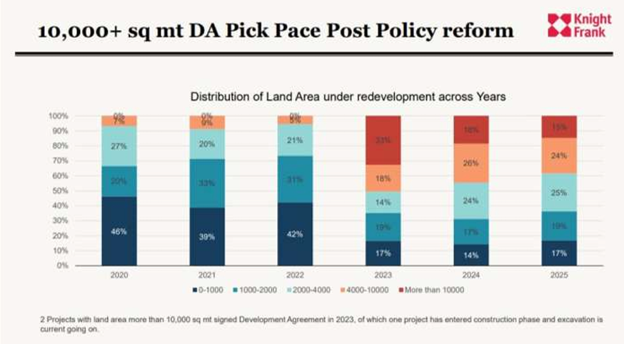 India’s financial capital Mumbai has emerged as a Numero Uno city with a huge potential for redevelopment of residential societies. According to a recent Knight Frank report, since 2020, a total of 910 housing societies have signed development agreements (DA), unlocking nearly 327 acres (1.32 million sqm) of potential land area. An estimated 160000 societies over the age of 30, are eligible for redevelopment which will add a total of over 44K new homes at the value of INR 1305 billion.